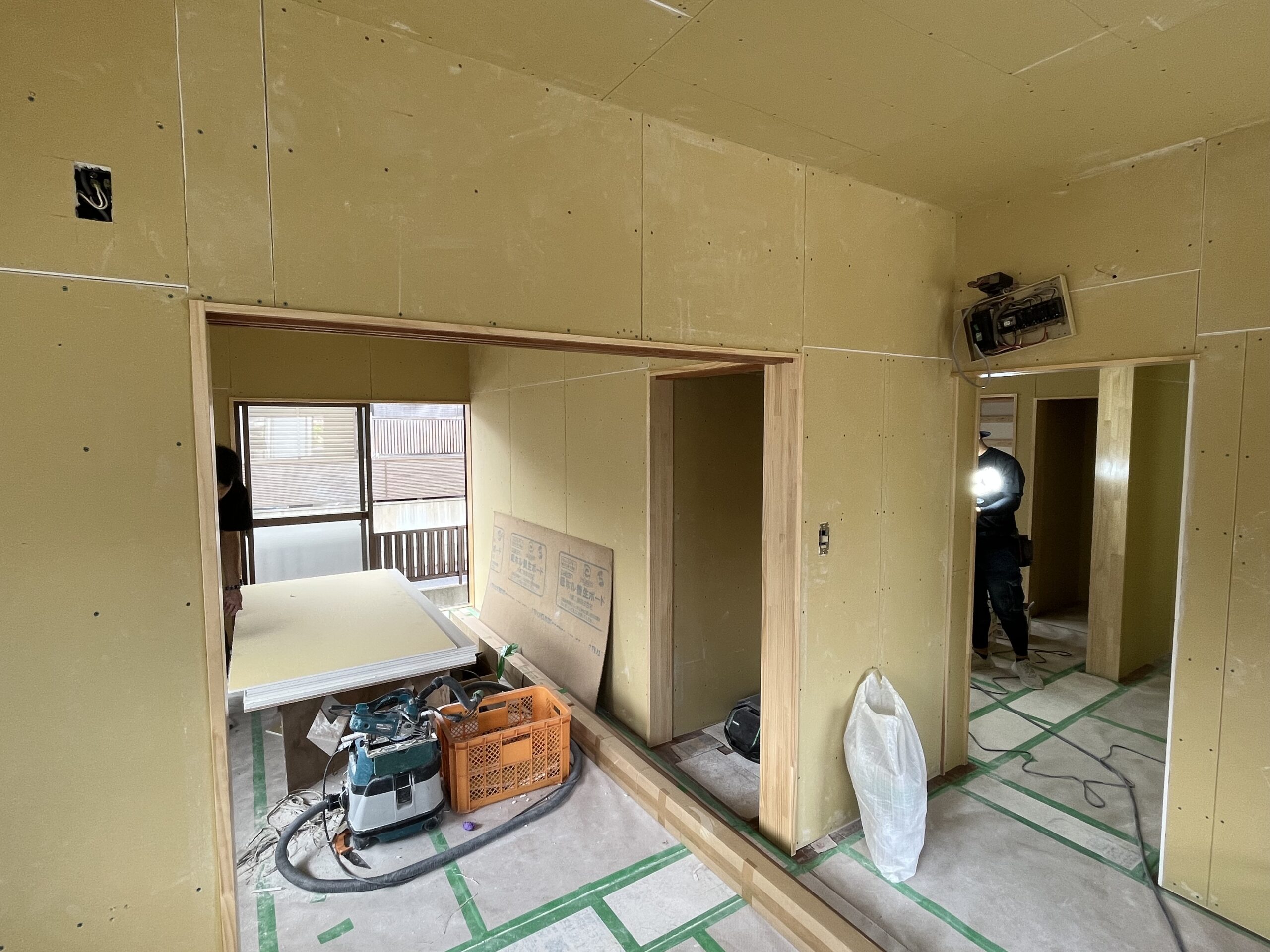 壁と天井にボードを張ります。